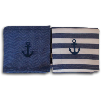 2er Set Geschirrtuch mit aufgesticktem Anker Blau Weiß 100% Baumwolle 50 x 74 cm