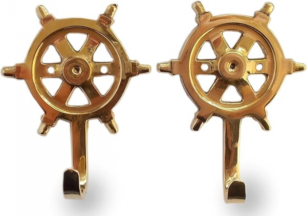 2er Set Maritime Kleiderhaken aus Messing mit Steuerrad Motiv 7x5,2cm