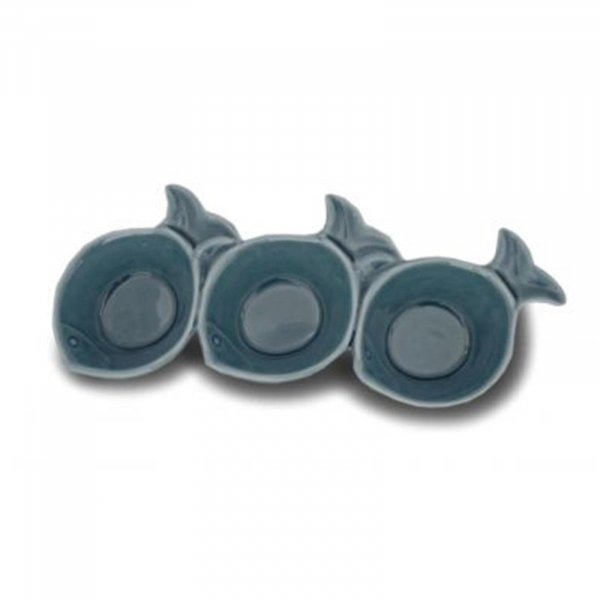 3er-Schale-Fisch Steingut, blau