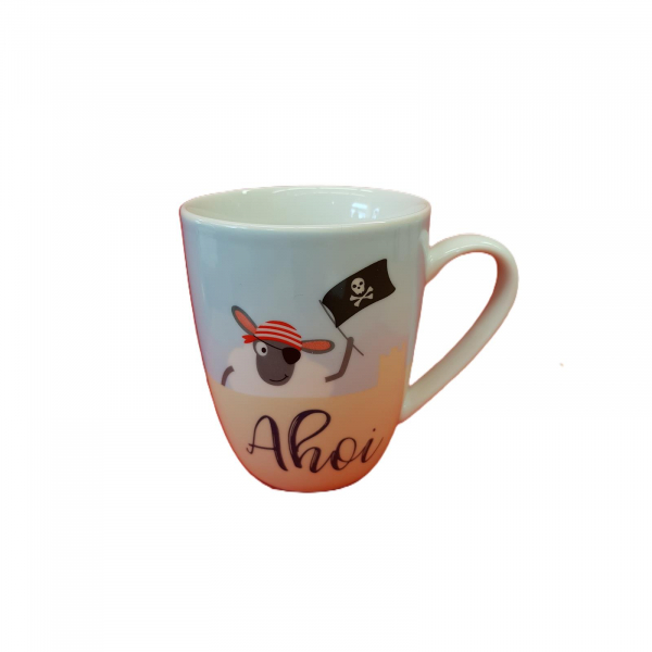 Becher "Ahoi Schaf" Augenklappe mit Bandana und Piratenflagge 250ML