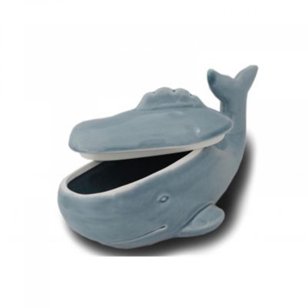 Eine sehr schöne Aufbewahrungsdose aus Steingut der Form eines Wals. In den Farben Blau (lackiert) und Weiß. Material: Steingut Maß22x10x10 cm