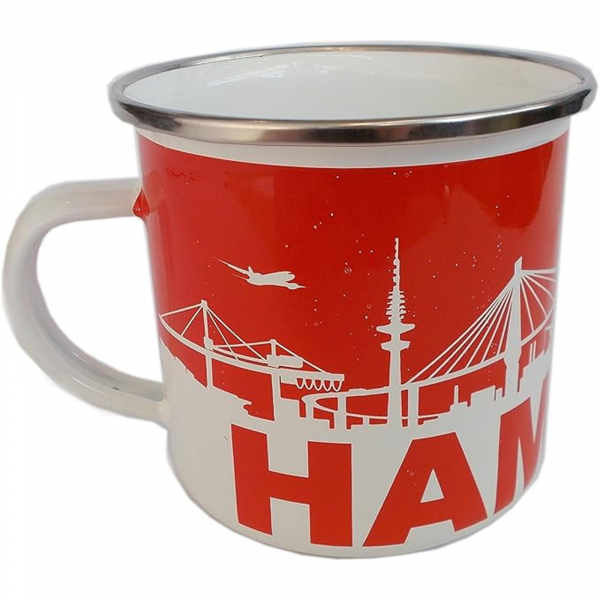 Hamburg Becher aus Metall mit Skyline Wappen und Schriftzug Rot 300ml