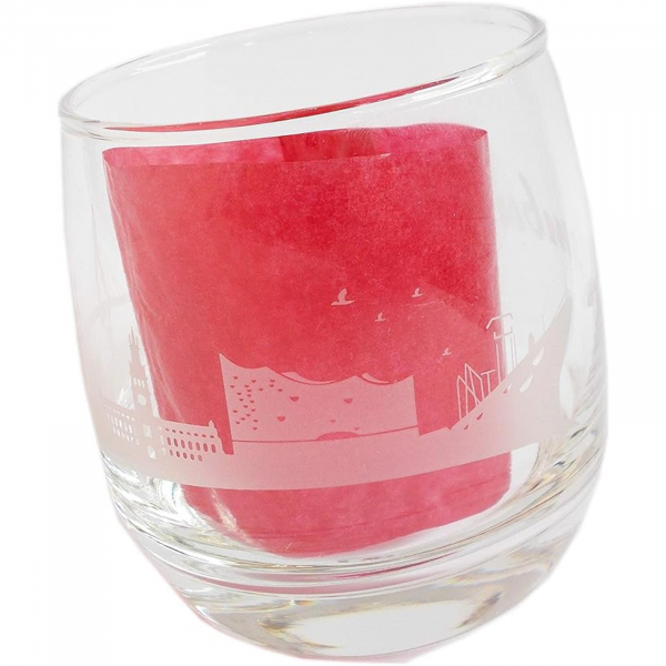 Hamburg Whiskey-Glas Tumbler mit geätztem Motiv - Maritimes Trinkglas mit Hamburger Skyline und Schriftzug - 250 ml