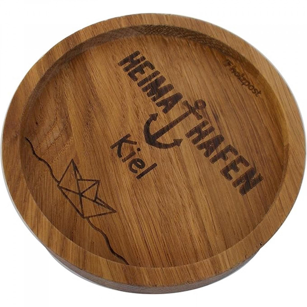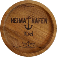 Maritimer Glas-Untersetzer - Runder Untersetzer aus rustikaler Eiche Holz mit eingebranntem Motiv (61341)
