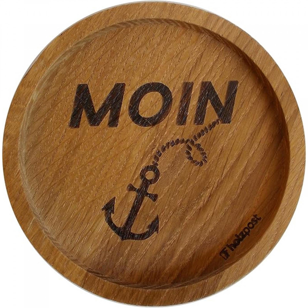 Maritimer Glas-Untersetzer - Runder Untersetzer aus rustikaler Eiche Holz mit eingebranntem Motiv (61342)
