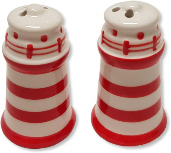Salz- und Pfefferstreuer im maritimen Design, Set aus 2 Stück, Rot-Weiß gestreift