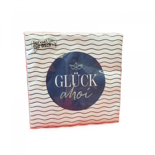 Servietten "Glück Ahoi" Sehr schöne Zellstoff-Servietten mit maritimen Motiv "Glück Ahoi".