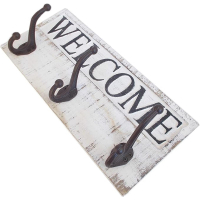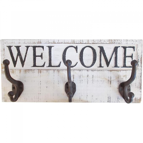 Wandgardeobe Welcome - Rustikale Gardeobe mit DREI Kleider-Haken - Aus Holz und Gusseisen, 39 x 17,5 cm